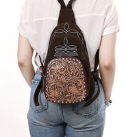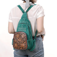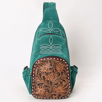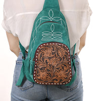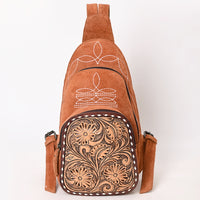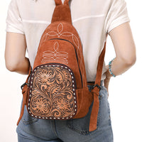 ADBG1573 Genuine suede Sling Bag - Floral Tooled Leather Pocket