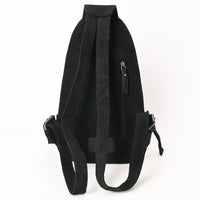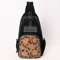 ADBG1573A Black Genuine suede Sling Bag - Tooled Leather Floral Pocket