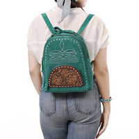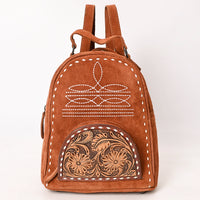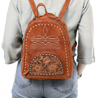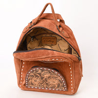 ADBG1574 Genuine suede Western Backpack - Tooled Leather Floral Pocket