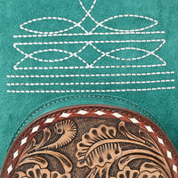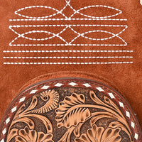 Infuse your style with rich Western charm with this Genuine suede Backpack, featuring a hand-tooled leather floral front pocket and white whipstitch accents. The warm rust tone is perfectly complemented by the intricate floral detailing, making this backpack both a fashion statement and a functional essential.