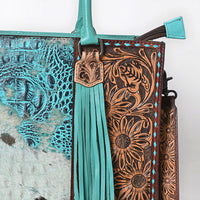 ADBG1578 Turquoise Cowhide Tote - Tooled Leather & Fringe Accents
