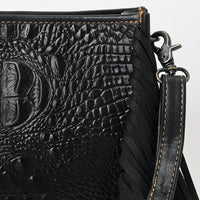 ADBG1579 Black Crocodile Embossed Leather Fringe Crossbody Bag