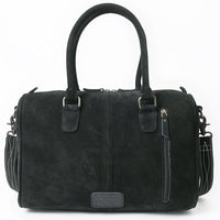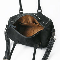 ADBG1585A Black Genuine suede Embroidered Duffel Handbag - Western Weekender with Shoulder Strap
