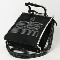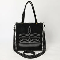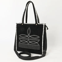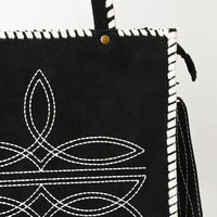 ADBG1590 Black Genuine suede Embroidered Tote Bag - Western Whipstitch Shoulder & Crossbody Purse
