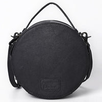 Bold, unique, and unmistakably Western—this round Canteen bag is a stunning fusion of rustic charm and edgy sophistication. Crafted from premium leather, the centerpiece features a textured, croc-embossed leather design, framed by a hand-tooled tan floral border for eye-catching contrast.