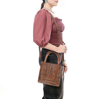 ADBG1608 Compact Handtooled Leather Crossbody Tote Bag with Geometric Floral Pattern