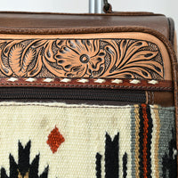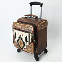 ADBG1613 Western Rolling Carry-On Luggage with Tooled Leather & Aztec Woven Front