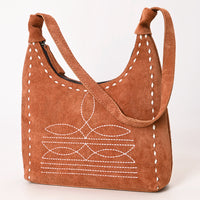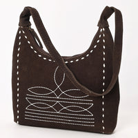 ADBG1617 Genuine suede Hobo Bag with White Southwestern Stitching & Whipstitch Trim