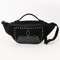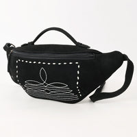 ADBG1618A Black Suede Western Fanny Bag with White Southwestern Stitching