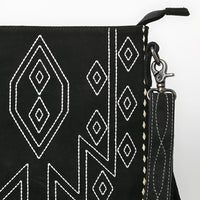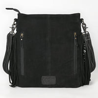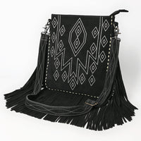 ADBG1621 Black Genuine suede Fringe Crossbody Bag with White Tribal Stitching