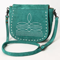 ADBG1622 Genuine suede Flap Crossbody Bag with White Southwestern Stitching