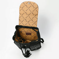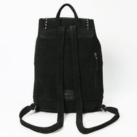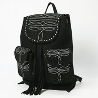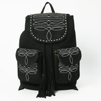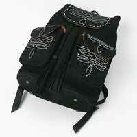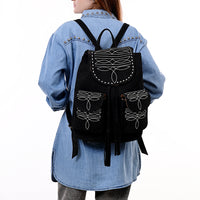 ADBG1624A Black Genuine suede Western Backpack with White Embroidery and Tassel Accents