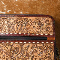 ADBG1638 Western Cowhide Leather Rolling Travel Case - Hand Tooled Luggage by American Darling