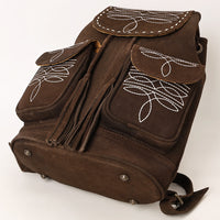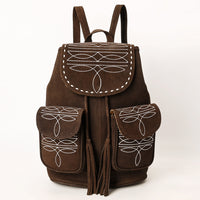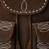 Carry Western charm on your shoulders with this handcrafted brown Genuine suede backpack featuring elegant white embroidery and tassel accents. This soft yet structured bag is designed with dual front flap pockets, a drawstring top, and a secure flap closure, making it ideal for everyday wear, travel, or festival outings.