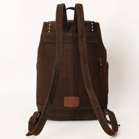 ADBG1640 Brown Genuine suede Embroidered Backpack with Dual Front Pockets and Tassel Drawstring