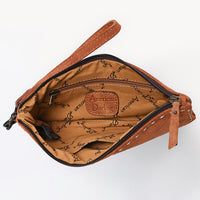 Compact, soft, and stylish—this tan Genuine suede wristlet pouch is the perfect grab-and-go accessory for your Western wardrobe. Featuring a minimalist silhouette, detailed white embroidery, and diamond whipstitch trim, this pouch delivers artisan quality in a functional form. The detachable wristlet strap allows for easy carrying, while the zip-top keeps essentials secure.