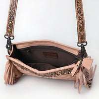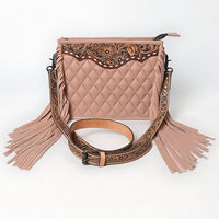 ADBG1664A Pink Quilted Crossbody Bag with Tooled Leather Strap & Fringe