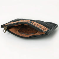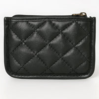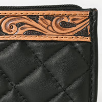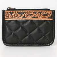 ADBG1669 Black Quilted Leather Coin Pouch with Tooled Leather Floral Trim