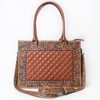 ADBG1671A Tooled Leather Quilted Western Tote Bag with Floral Strap - American Darling