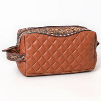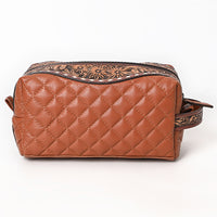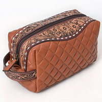ADBG1675A Quilted Leather Dopp Kit with Tooled Floral Accents - Brown Travel Pouch by American Darling