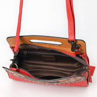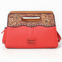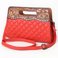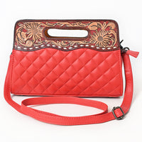 ADBG1677A Red Quilted Leather Cut-Out Clutch Bag with Tooled Floral Top - American Darling
