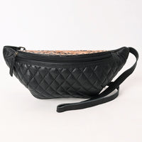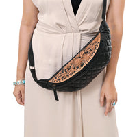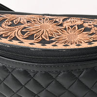 ADBG1680 Black Quilted Leather Fanny Bag with Floral Tooled Top - American Darling