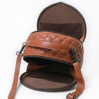 ADBG1684A Round Quilted Leather Canteen Bag with Floral Tooled Border - American Darling
