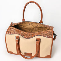 ADBG1697 Western Canvas Duffel Bag with Tooled Leather Accents