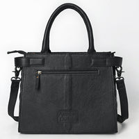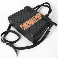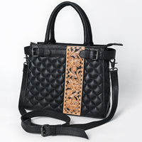 ADBG1704 Quilted Black Leather Tote Bag with Tooled Floral Leather Accent & Adjustable Strap