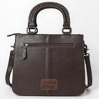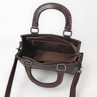 ADBG1707 Quilted Brown Leather Tote Bag with Hand-Tooled Floral Accent & Adjustable Strap