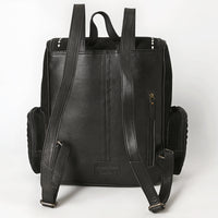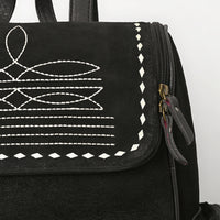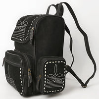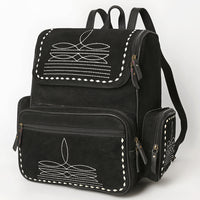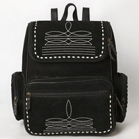 ADBG1710 Black Genuine suede Leather Backpack with White Western Stitch Embroidery & Side Pockets