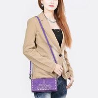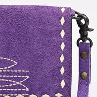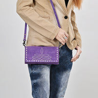ADBG1712 Genuine Leather Wallet Bag with White Western Stitching & Adjustable Strap