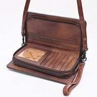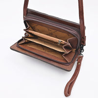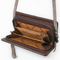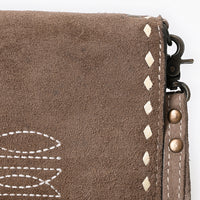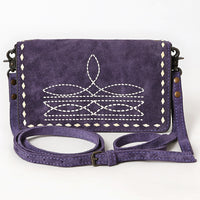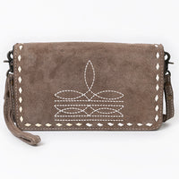 ADBG1717 Genuine suede Leather Wallet Bag with White Western Stitch Embroidery