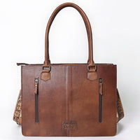 ADBG1718 Tooled Leather & Cowhide Western Tote Bag with Fringe and Floral Design