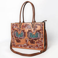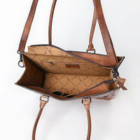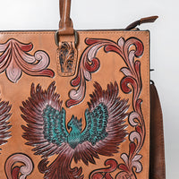 ADBG1731 Tooled Leather Western Tote with Double Phoenix Design & Scroll Embossing Tan
