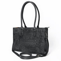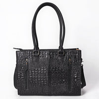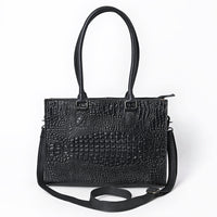 ADBG1737 Black Embossed Croc-Pattern Leather Tote with Dual Handles & Crossbody Strap