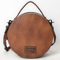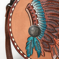 ADBG1740 Round Tooled Leather Crossbody Bag with Hand-Painted Headdress Design Western Artisan Style