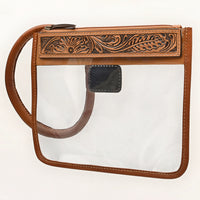 ADBG1762 Clear Stadium-Approved Western Wristlet with Tooled Leather Trim American Darling Game Day Bag