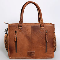 ADBG230 Hand Tooled Leather Tote Bag with Hair-On Cowhide Center & Leather Fringes
