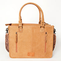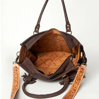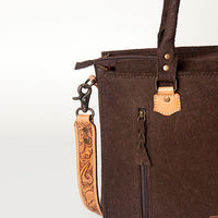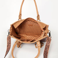 ADBG230 Hand Tooled Leather Tote Bag with Natural Floral Tooled Leather Panels & Fringes