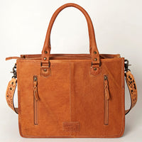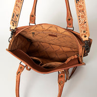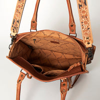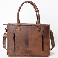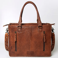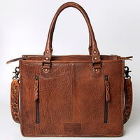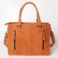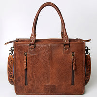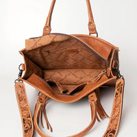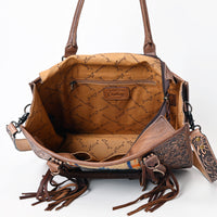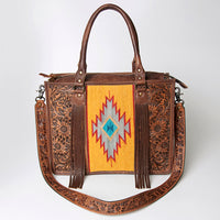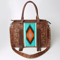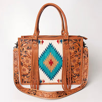 ADBG230 Western Leather Tote Bag with Saddle Blanket, Floral Design & Leather Fringes