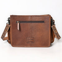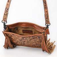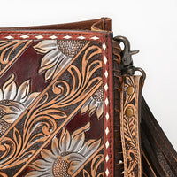 ADBG323 Hand-Tooled Leather Messenger Bag with Floral Daisies & Fringe Strap | American Darling