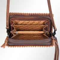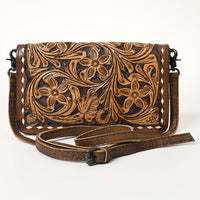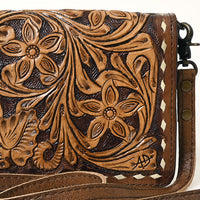 ADBG485 Western Floral Tooled Leather Organizer Bag Handmade Cowhide Wristlet by American Darling