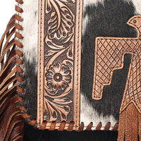 ADBG499BRW Tooled Leather Thunderbird Crossbody Bag with Fringe & Cowhide