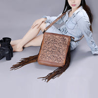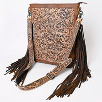 ADBG507 Tooled Leather Fringe Crossbody Bag with Adjustable Strap Western Floral Design