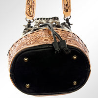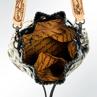 ADBG537BKW Hair-On-Hide & Tooled Leather Drawstring Bucket Bag Western Floral Carved Purse
