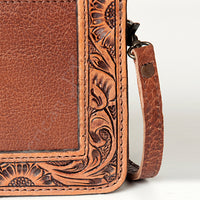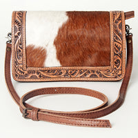 ADBG683 Hand-Tooled Western Leather Hair-On Hide Wallet Crossbody Bag American Darling
