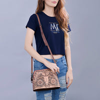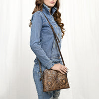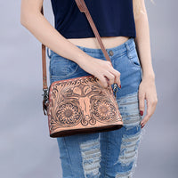 ADBG769 Western Tooled Leather Crossbody with Longhorn Design American Darling