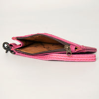Bright, bold, and functional this pink genuine leather wristlet wallet is the perfect pop of color for any Western wardrobe. Crafted from high-quality full-grain leather, it features a slim design with multiple card slots, a secure zippered coin pocket, and a detachable wrist strap for on-the-go convenience.