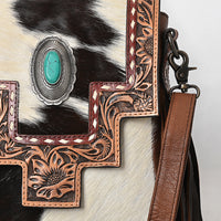 The handpicked cowhide hair-on genuine leather not only adds a soft and tactile element but also serves as an embellishment, enhancing its overall western appearance.